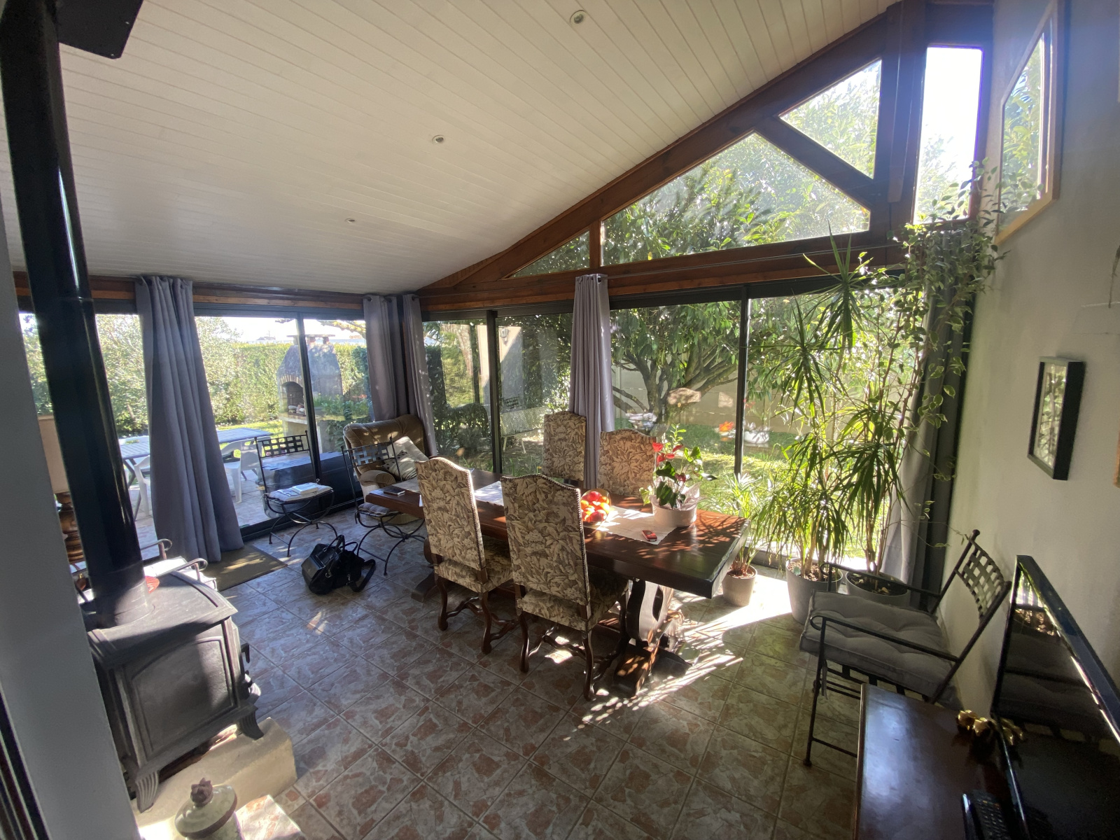 - Une véranda avec poêle à bois pour profiter toute l'année