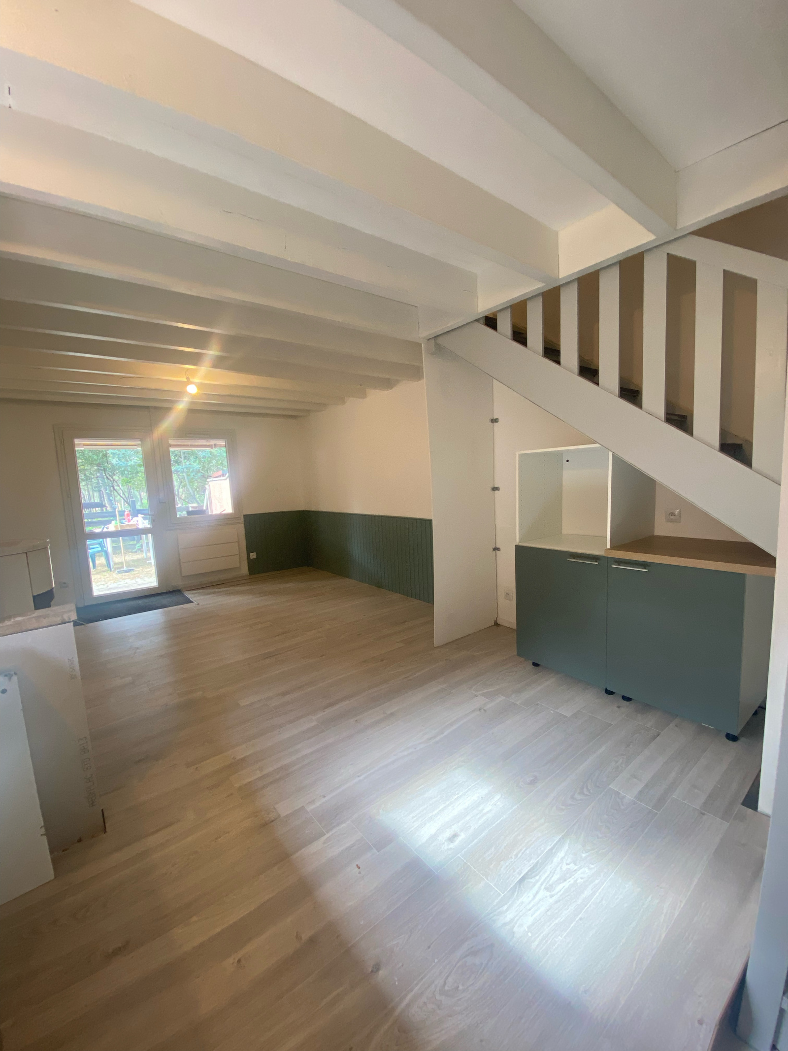 à propos de cebienexclusivité LIFT IMMO A vendre maison mitoyenne résidence les Cracks à Lacanau océan idéal résidence secondaire ou investissement locatif Sur 55m2 vous trouverez en rez de chaussée un séjour avec cuisine et poêle à granulé A l'étage deux chambres, une salle d'eau et un WC indépendant la jardin d'environ 50m2 est sans vis a vis