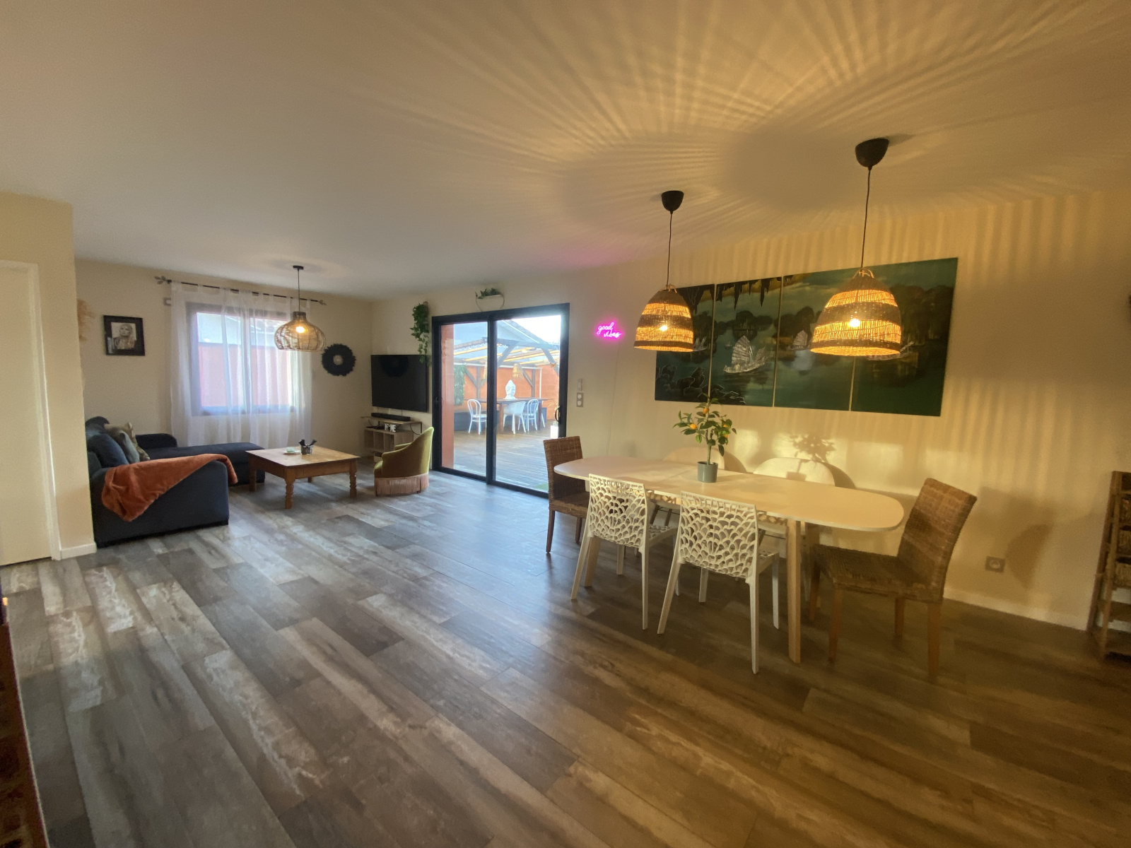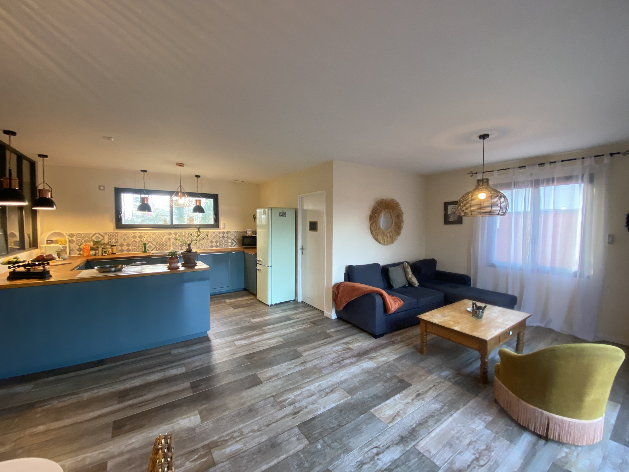 - un beau séjour avec une cuisine ouverte et son cellier attenant