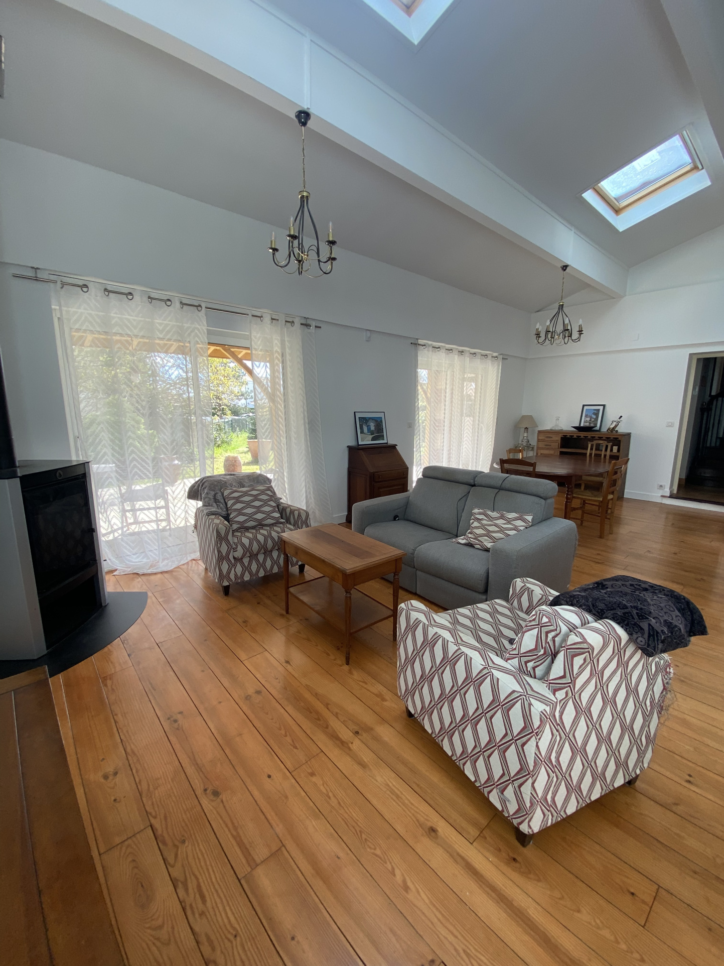 Une grande terrasse couverte donne sur le jardin
